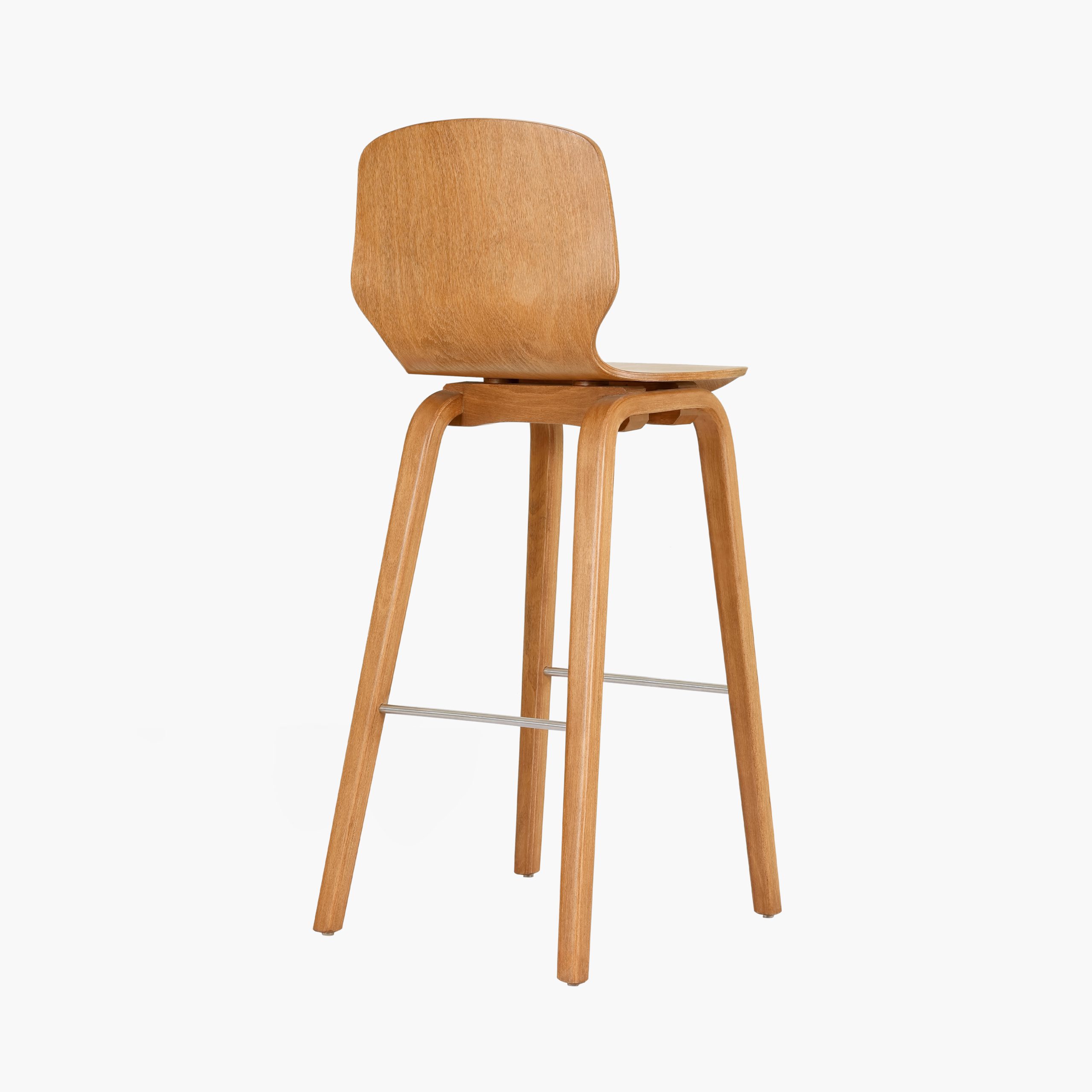 Kayın ağacı papellerinin tutkallanıp kalıplarda şekillendirilmesiyle üretilen bu bar sandalyesi, estetik ve sağlamlığı bir araya getirir. Doğal ahşabın sıcak dokusunu modern çizgilerle buluşturan tasarımı, hem evlerde hem de ticari mekânlarda uzun yıllar güvenle kullanılabilecek bir çözüm sunar. Paslanmaz çelik ayak desteği sayesinde rahat oturum sağlar.
